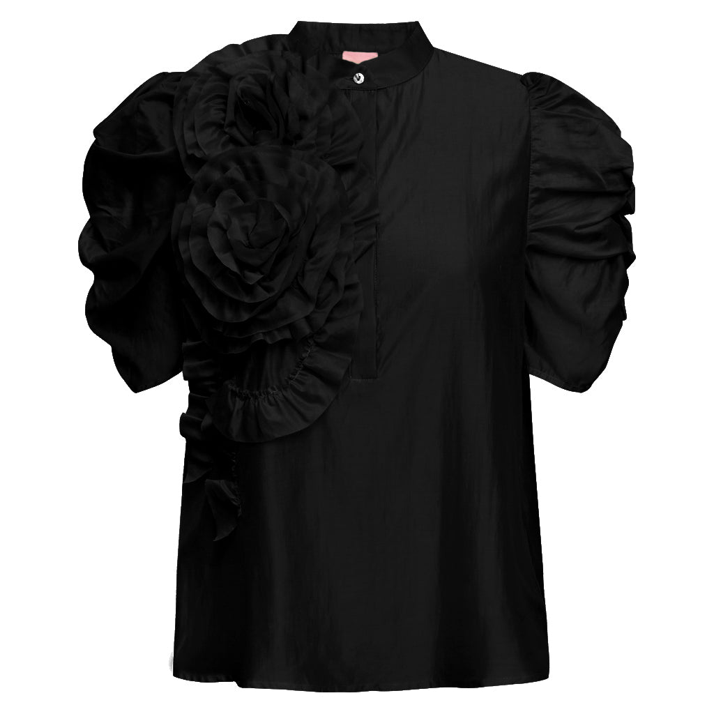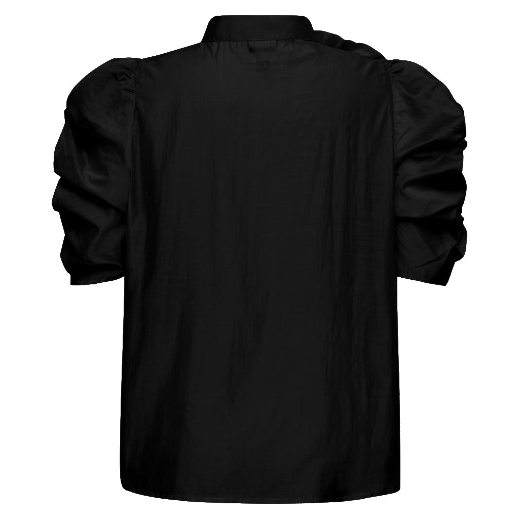 AnnsofieGO blouse fra Gossia, AnnsofieGO blouse fra Gossia med høy rund hals, draperte 2/4 lange ermer med puff på skulderen. Blusen har flotte applikasjoner og skjult knappestolpe. Modellen oppleves som normal på størrelsen.