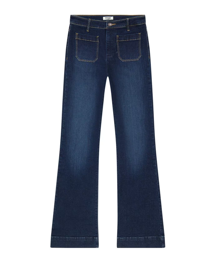 Flare Soft moonlight jeans fra Wrangler, Flare Soft moonlight jeans fra Wrangler med smale ben med sleng og firkantede lommer foran. Modellen er middels høy i livet og oppleves som normal på størrelsen.