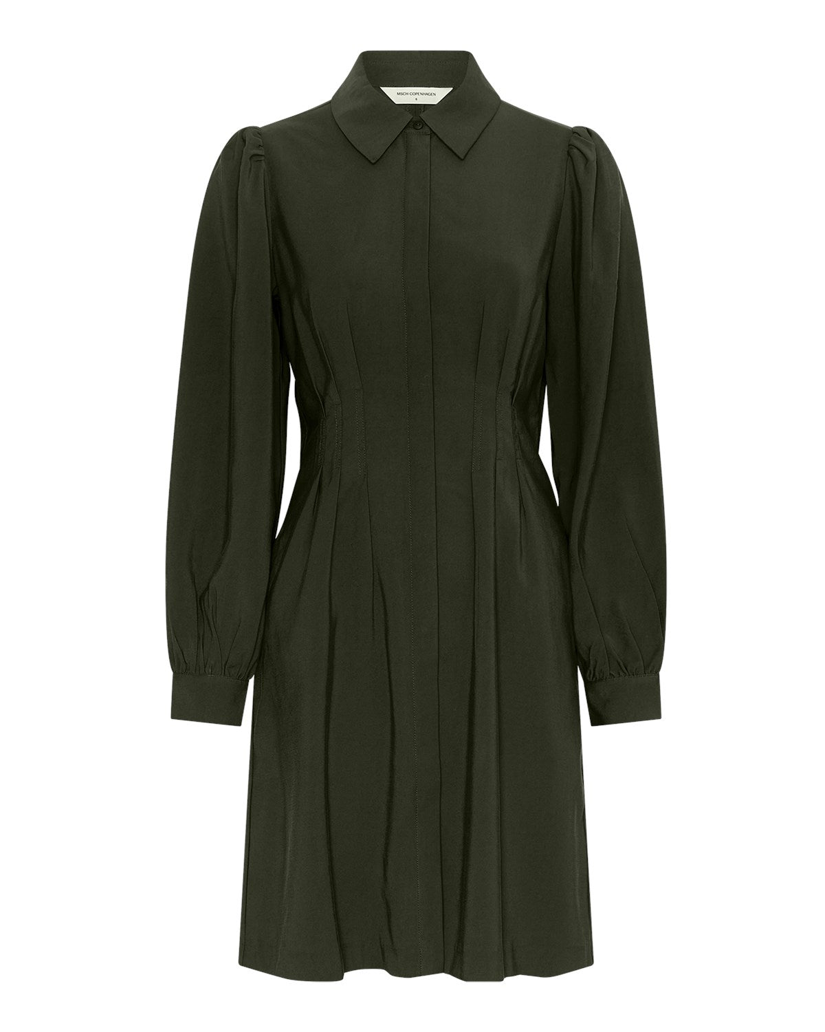 MSCHElsa Asana Dress er en elegant og bærekraftig kjole laget av Lenzing Ecovero-viskose, som gir en myk og behagelig følelse. Den grønne fargen gir et friskt preg, perfekt for enhver anledning.