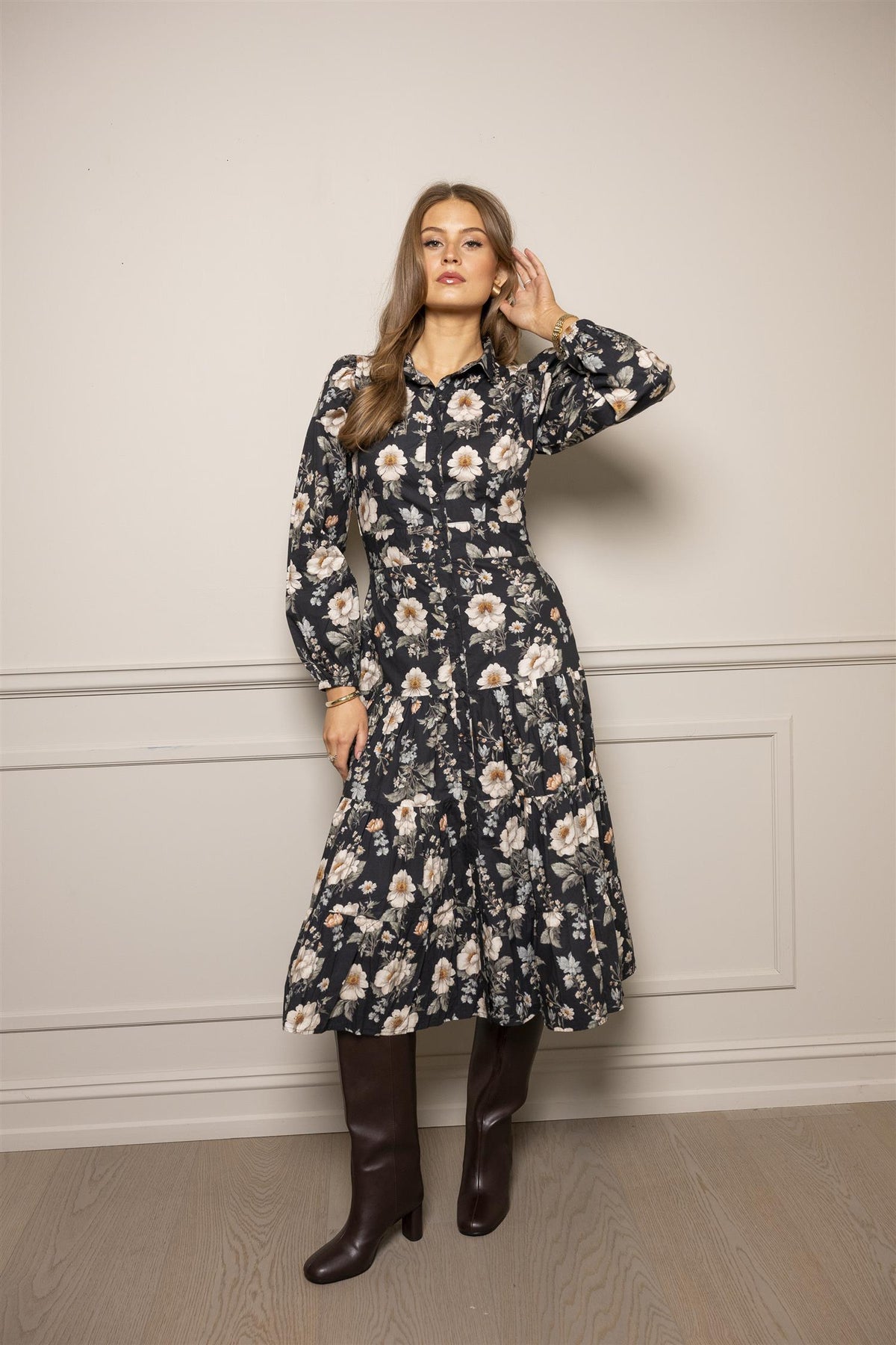 Vicky Midi Dress Antique Black Poplin fra Missmaya er laget av 100% bomull