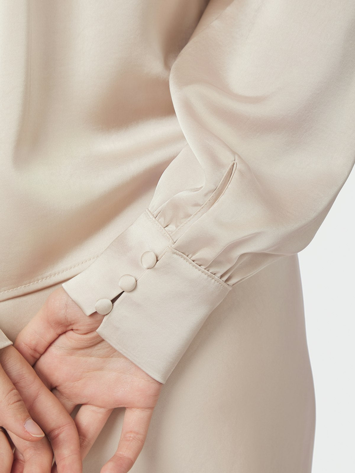Rosslyn Heavy Sateen Blouse er en elegant bluse med lange ermer og en åpen halslinje foran. Den er perfekt for spesielle anledninger og gir et sofistikert preg til antrekket ditt.