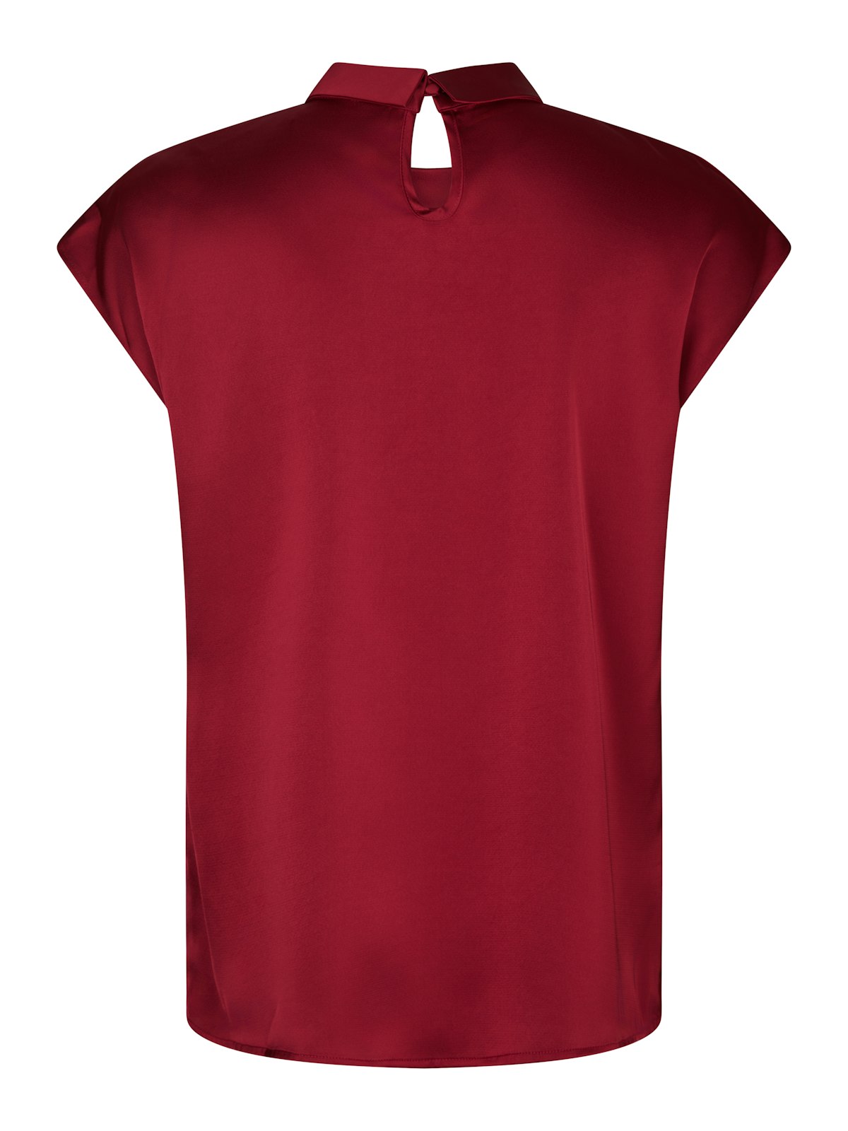 Fleur Drapy Satin Bluse er en elegant og stilfull bluse laget av 100% polyester. Den dype vinrøde fargen gir et sofistikert preg, perfekt for spesielle anledninger.