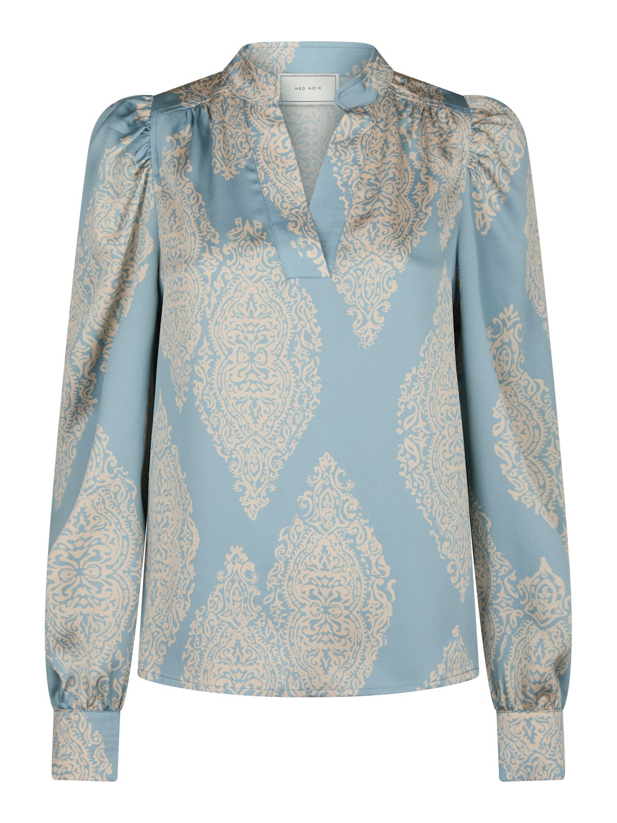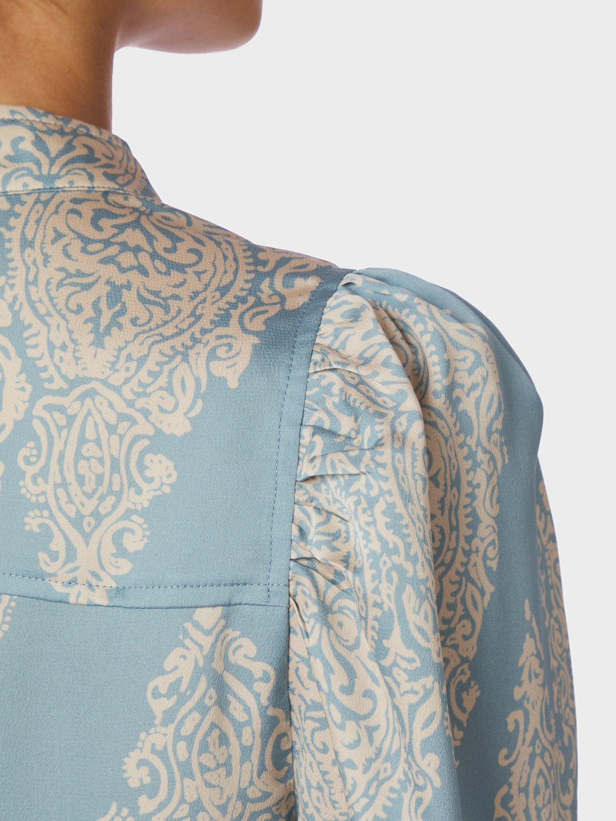 Rosslyn Paisley Drop Blouse er en elegant bluse i en delikat støvet blå farge, perfekt for en sofistikert look. Denne blusen er laget av 100% polyester, noe som gir en lett og behagelig passform.