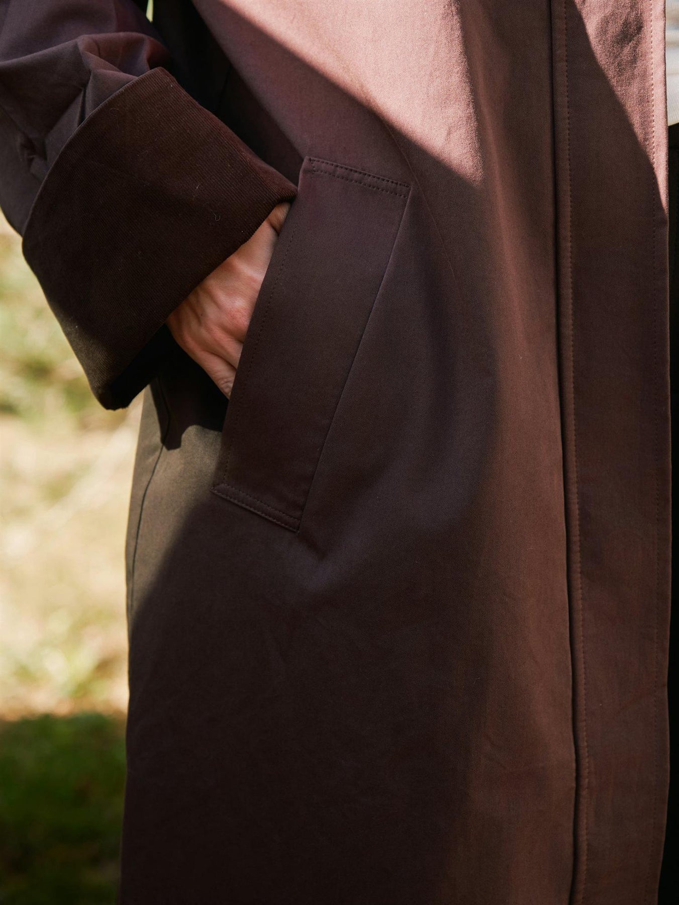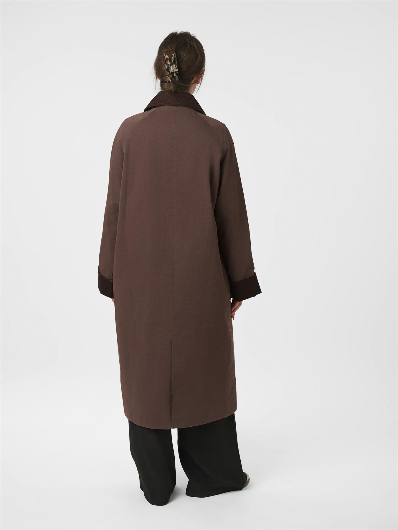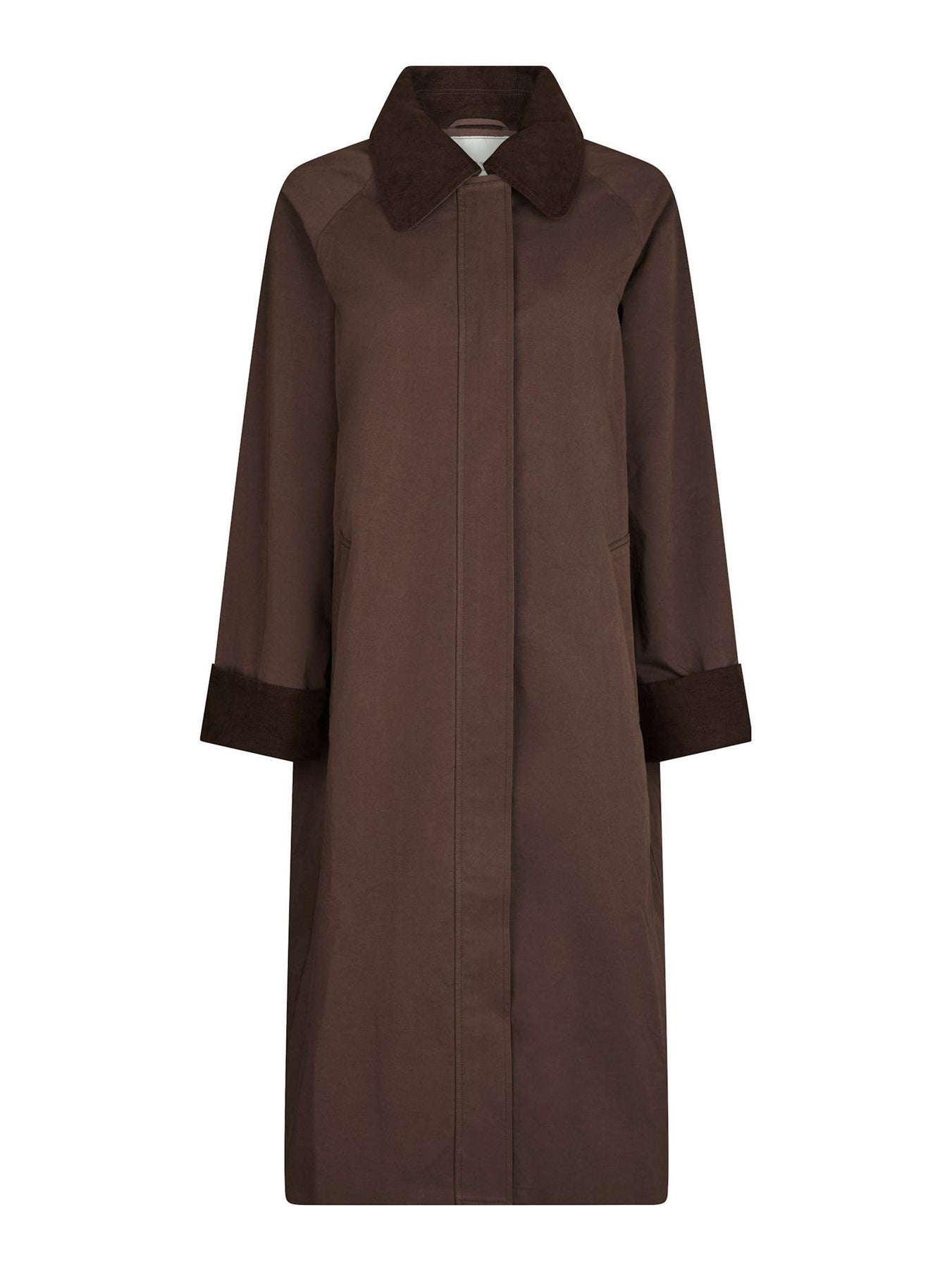 Anneli cord Coat fra Neo Noir, Anneli cord Coat fra Neo Noir med klassisk cord krage, lange litt vide ermer med cord mansjetter og stikklommer. Frakken er en lang modell og lukkes med med skjult knappestolpe. Oppleves som litt stor på størrelsen.