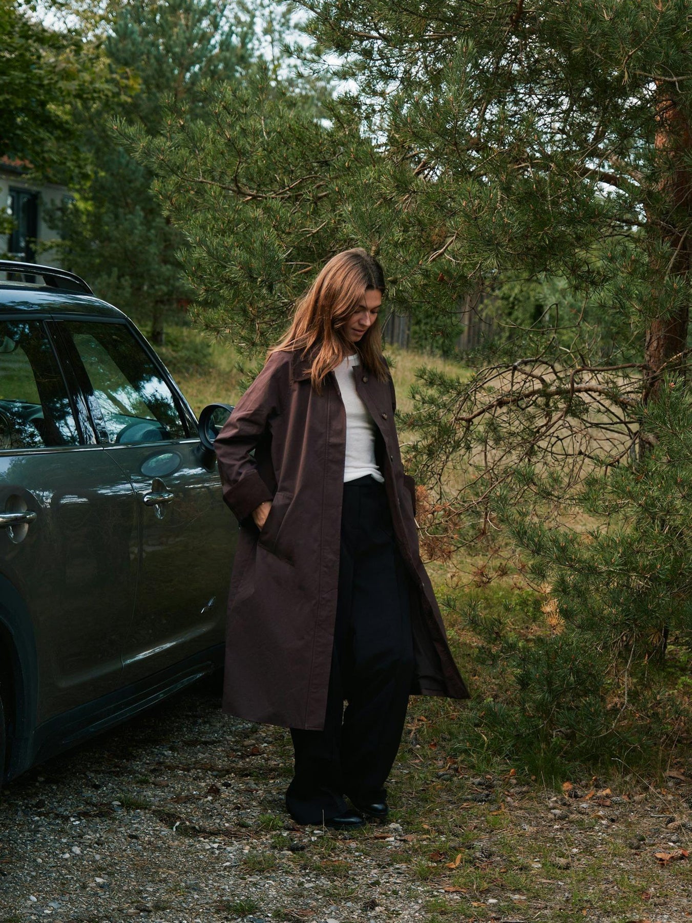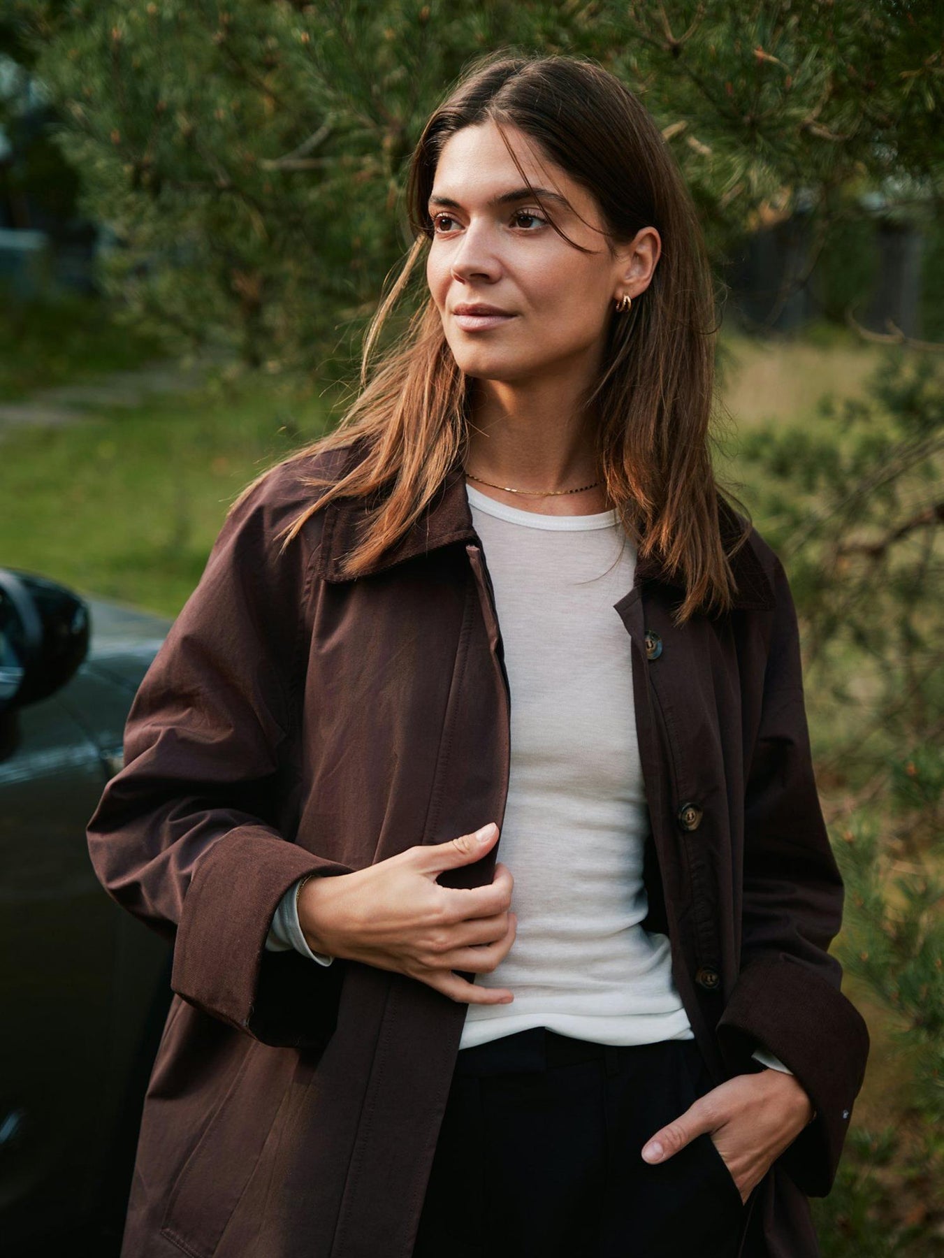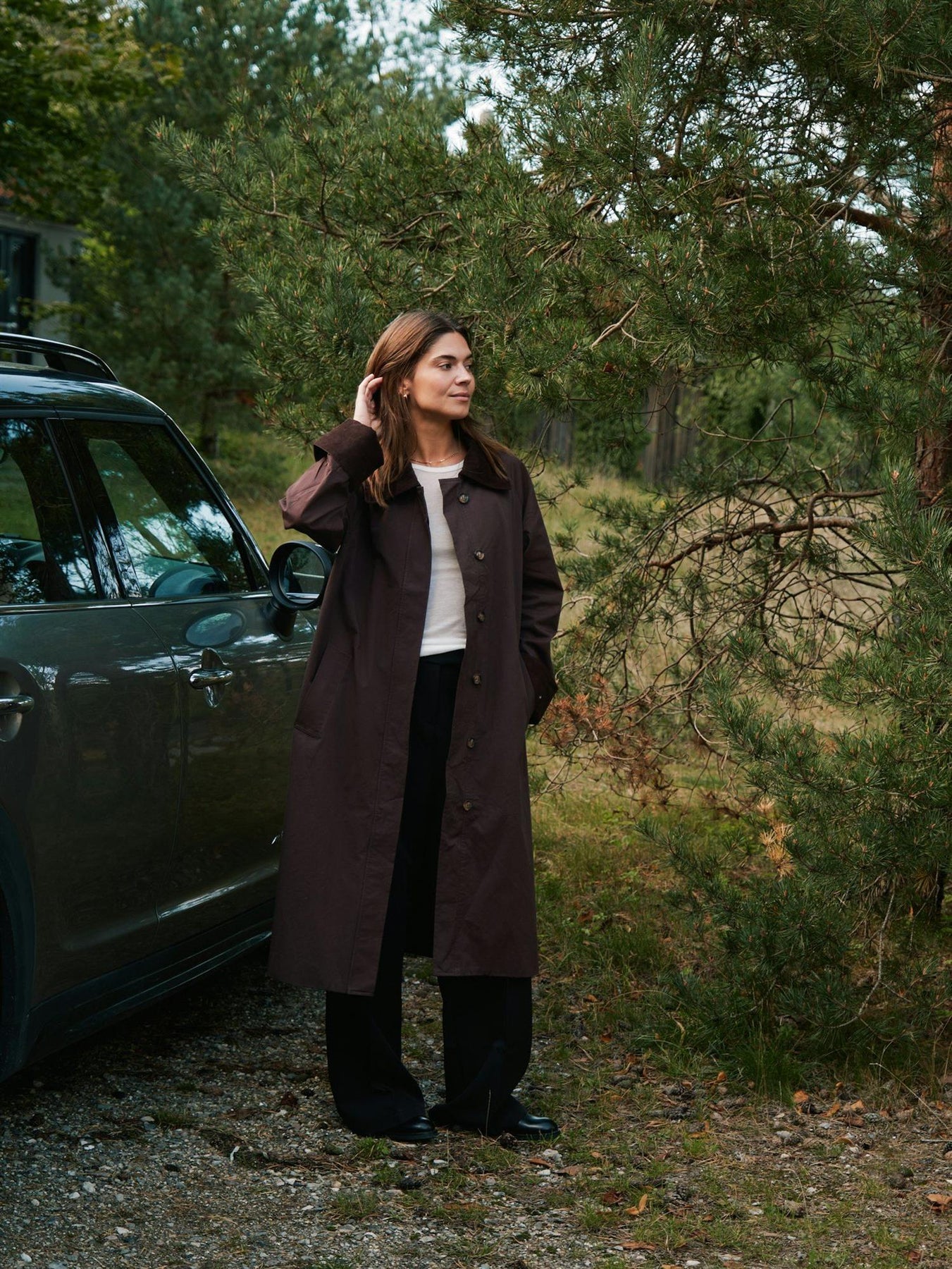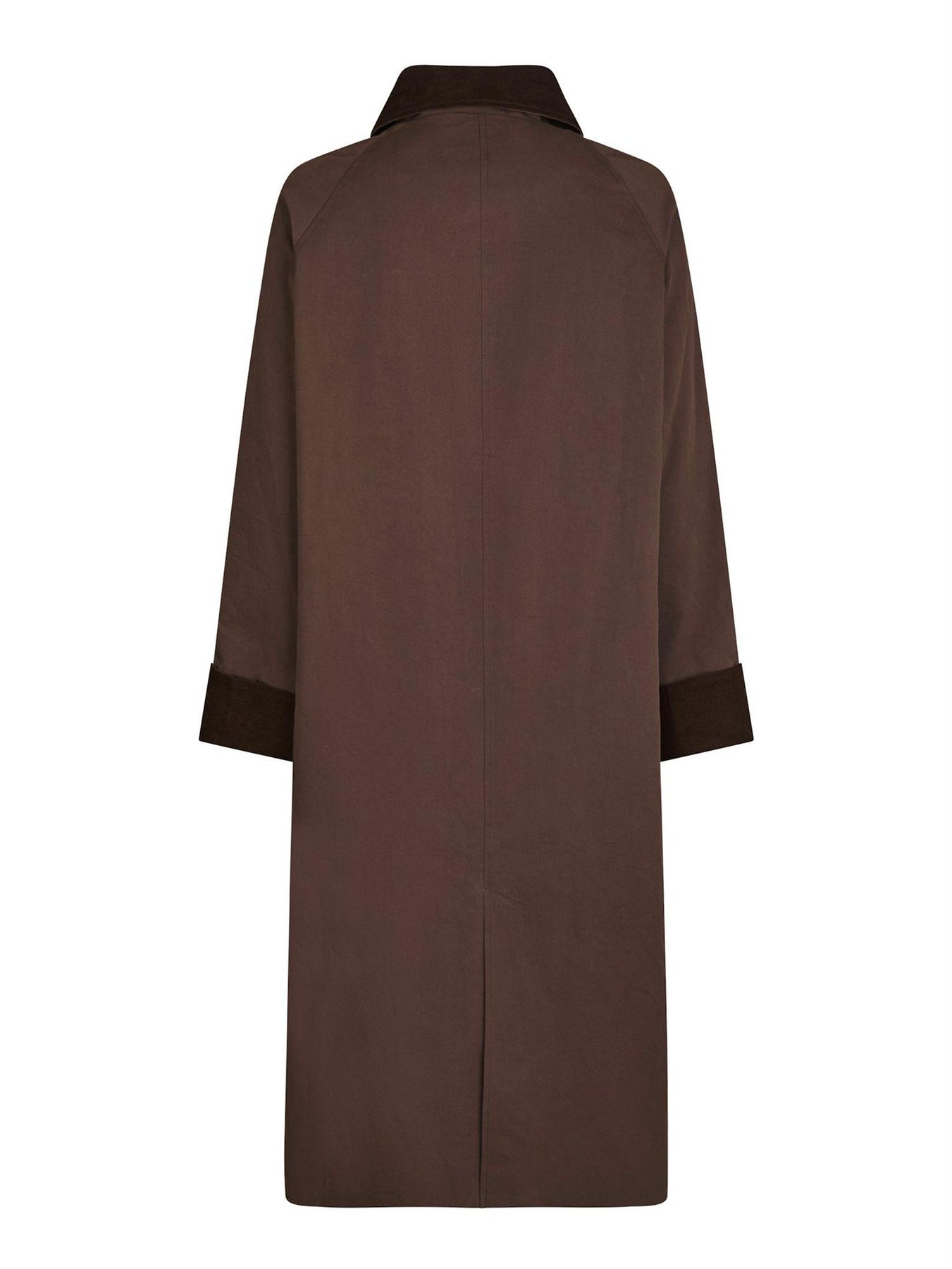 Anneli cord Coat fra Neo Noir, Anneli cord Coat fra Neo Noir med klassisk cord krage, lange litt vide ermer med cord mansjetter og stikklommer. Frakken er en lang modell og lukkes med med skjult knappestolpe. Oppleves som litt stor på størrelsen.