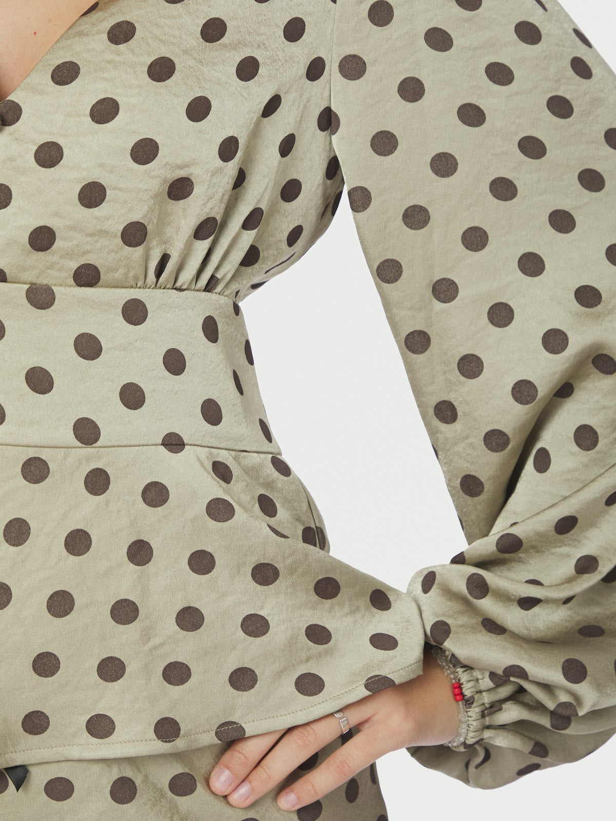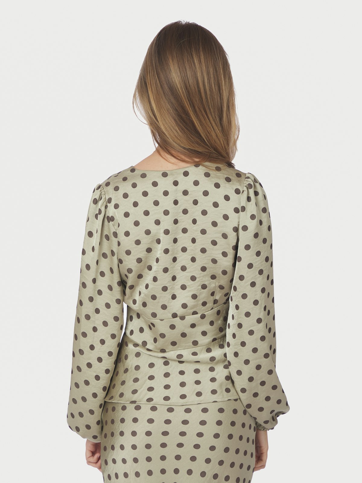 Jellima Dotted Blouse i en delikat pistachio-farge er et perfekt valg for en stilfull og moderne look. Denne blusen er laget av 100% polyester, noe som gir den en lett og behagelig følelse, ideell for hverdagsbruk.
