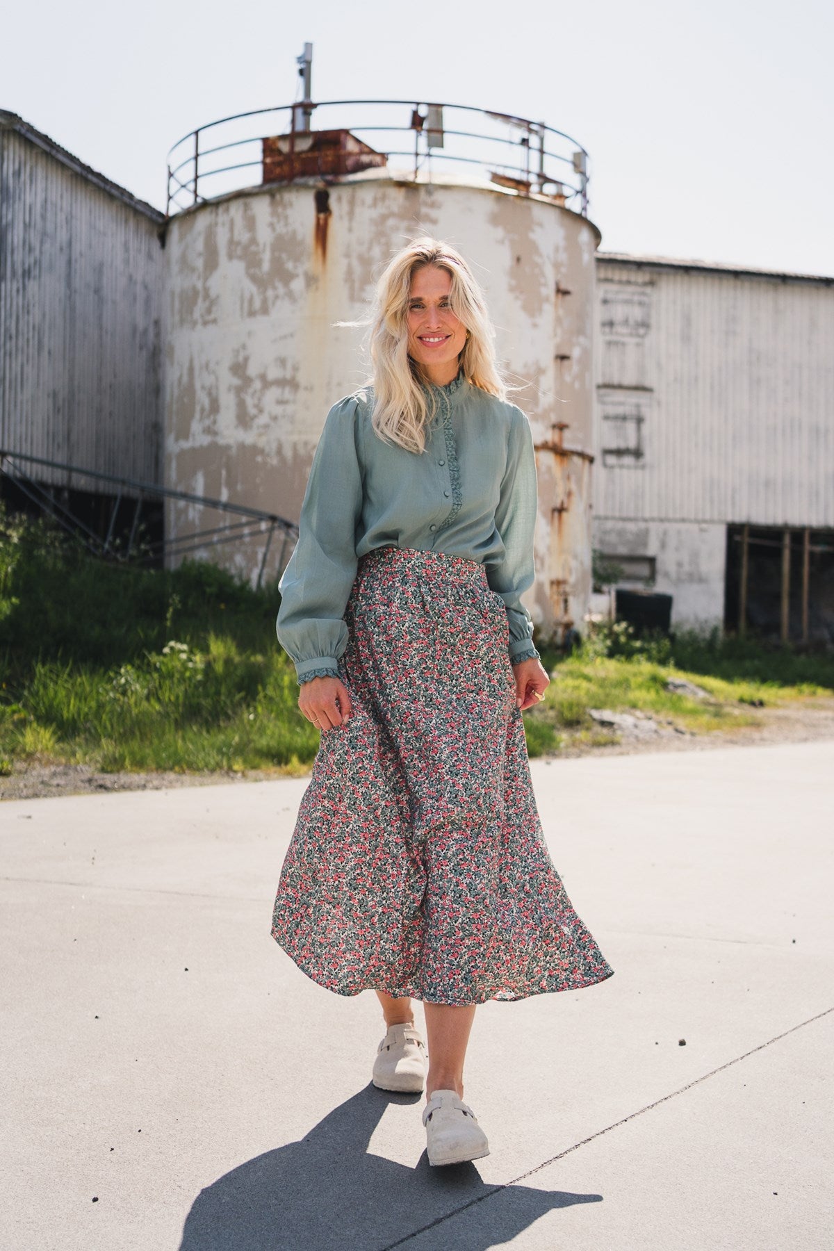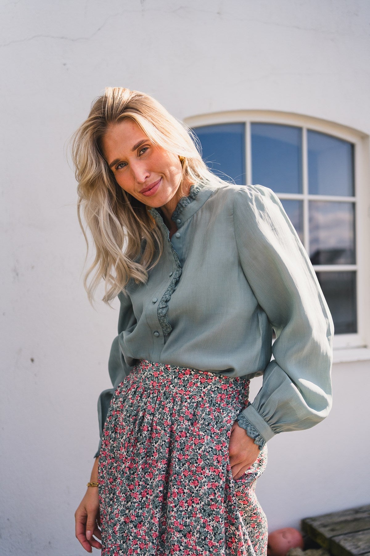 RAUSOlivie Shirt i Chinois Green er en stilren og komfortabel skjorte laget av høykvalitetsmaterialer. Denne skjorten kombinerer moderne design med en myk følelse, perfekt for både hverdagsbruk og mer formelle anledninger.