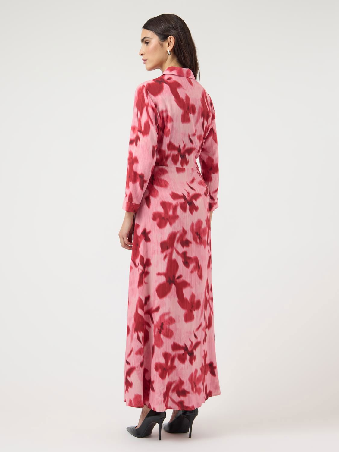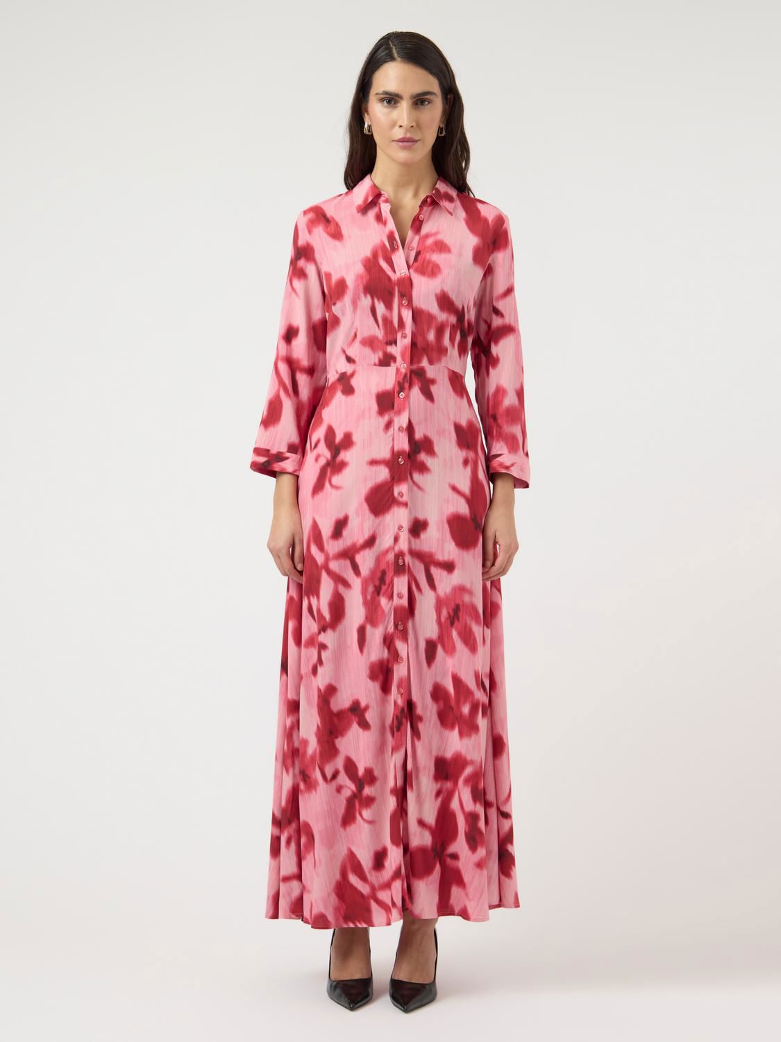 YASSAVANNA lang skjortekjole er et tidløst plagg som gir et elegant preg til enhver garderobe. Laget av mykt og glatt viskosestoff, gir denne kjolen både komfort og stil. Den har en V-hals, 7/8 ermer og en praktisk knappelukking, noe som gjør den perfekt for både avslappede og mer formelle anledninger.