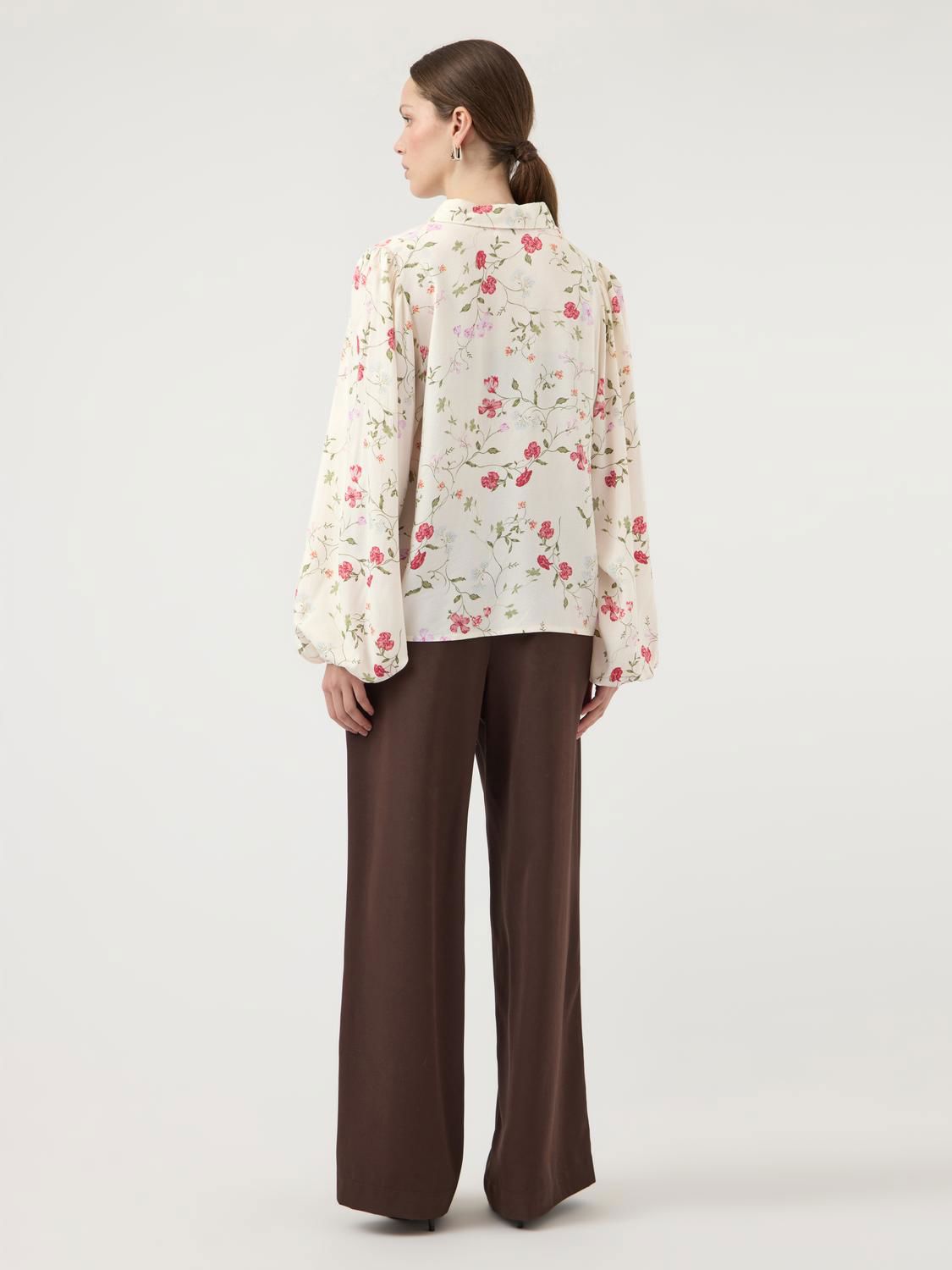 YASASINA LS SHIRT S. NOOS er en elegant skjorte laget av mykt og glatt viskosestoff, perfekt for en sofistikert stil. Den har lange ballongermer og en klassisk skjortekrage, noe som gir et tidløst preg. Med sitt delikate print og behagelige passform, er denne skjorten et utmerket valg for spesielle anledninger.