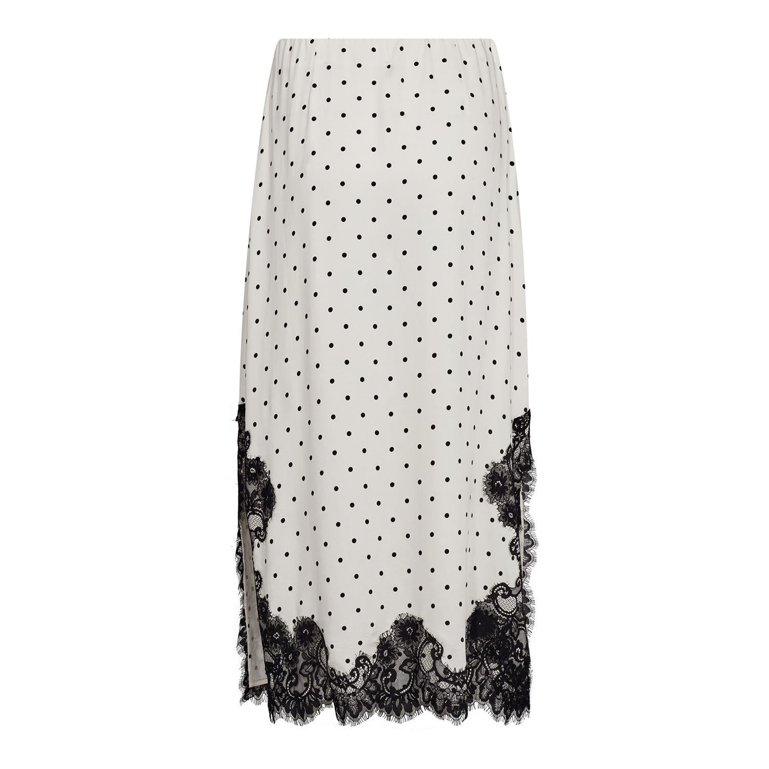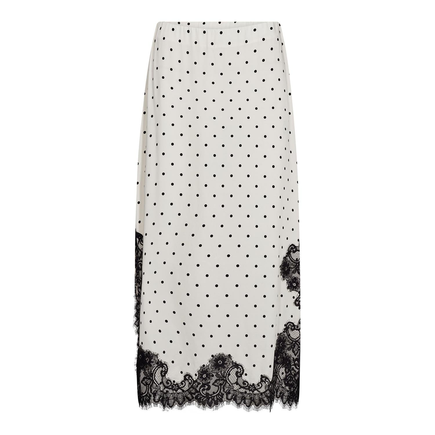 AmeliCC Dot Lace Skirt er en elegant og lett skjørt laget av 100% viskose, perfekt for varme dager. Den off-white fargen gir et friskt og delikat utseende, noe som gjør det enkelt å style med ulike topper.