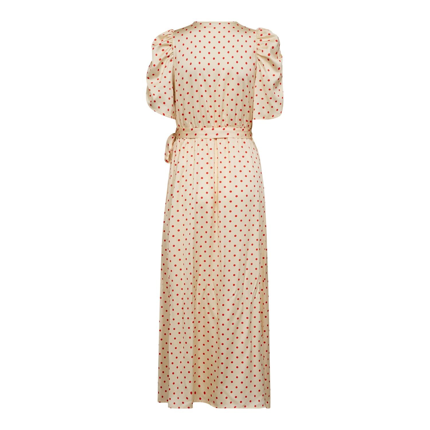 CambriaCC Dot Wrap Dress i off white er en elegant og tidløs kjole laget av 100% viskose, som gir en myk og behagelig følelse mot huden. Denne kjolen er perfekt for spesielle anledninger, og dens klassiske design gjør den lett å style med ulike tilbehør.